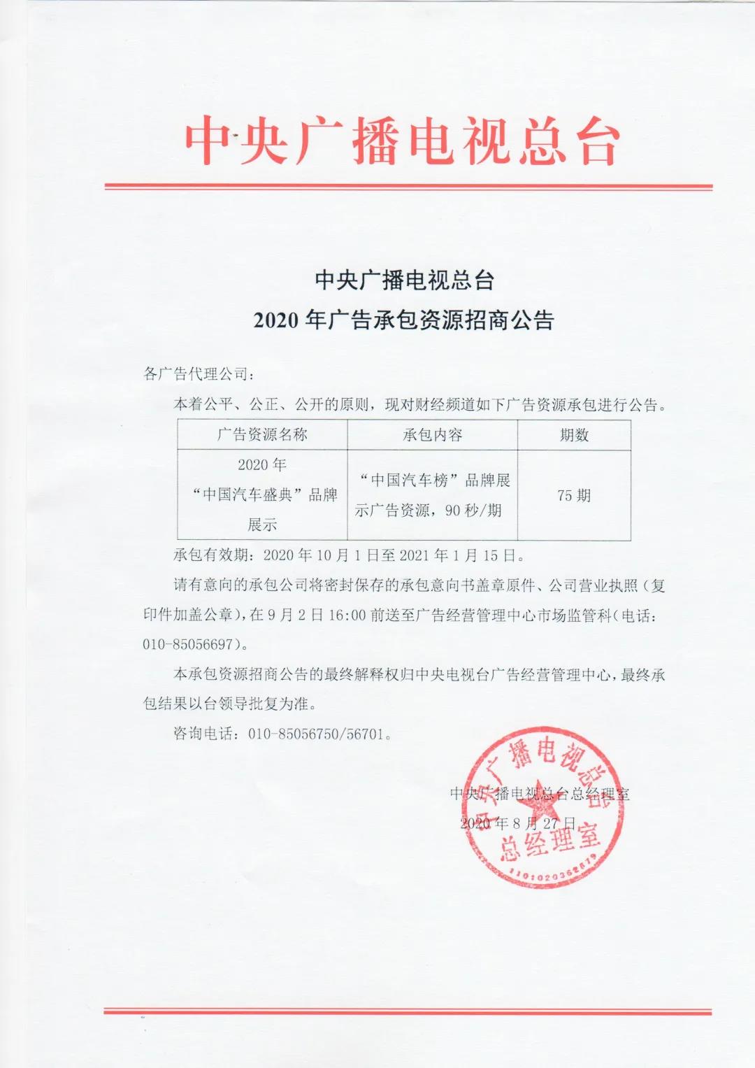 中央广播电视总台2020年广告资源招商公告