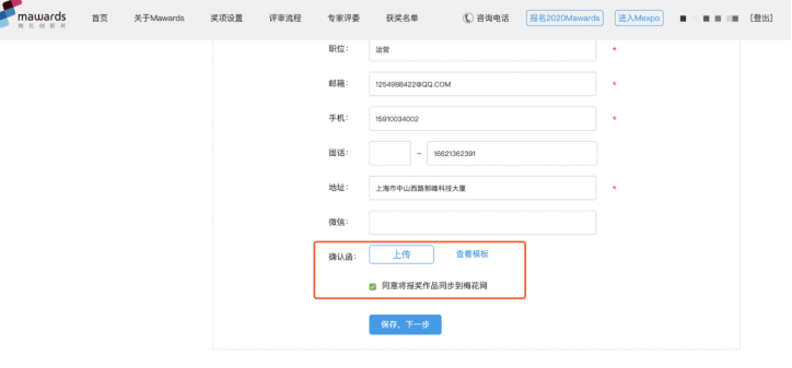根据提示填写参赛作品的基本信息,注意参赛类别和参赛奖项的勾选。