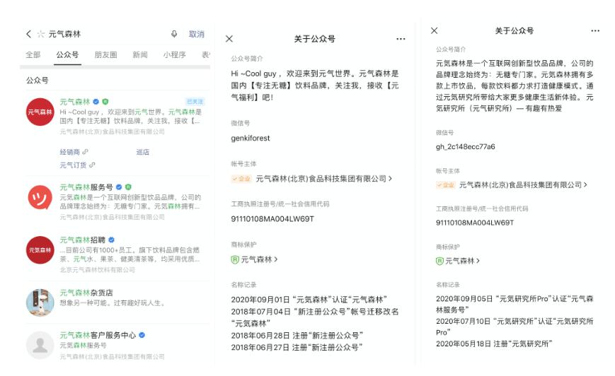 9月1日下午,元气森林公司官方公众号发布了一条更名信息,称公众号“元気森林”已更改名称为“元气森林”。紧接着在9月5日,“元気研究所Pro”公众号显示更名为“元气森林服务号”。