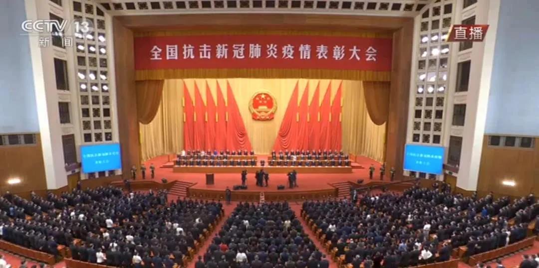 9月8日上午10时,全国抗击新冠肺炎疫情表彰大会在北京人民大会堂举行,中共中央总书记、国家主席、中央军委主席习近平向国家勋章和国家荣誉称号获得者颁授勋章奖章并发表重要讲话,大会对全国抗击新冠肺炎疫情先进个人、先进集体,全国优秀共产党员、全国先进基层党组织进行表彰。