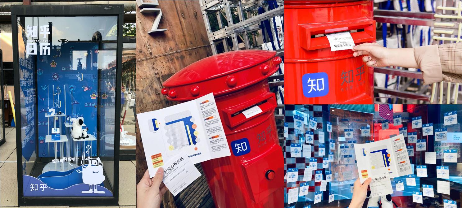 751国际设计节期间,知乎特别企划了“好奇心贩卖机”装置,在一个能自动售卖故事的邮筒中,将各种有趣问题抛给观展者,答案则需要在《知乎日历》中找一找。