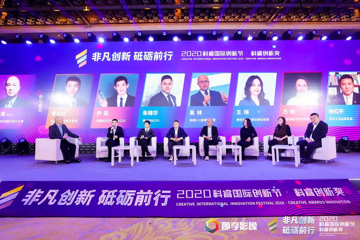 科睿国际创新节执行主席田涛主持了本场圆桌互动环节,来自秋果酒店运营与营销副总裁廖永红、宝露兹天然矿泉水CEO尹凯、睡8科技创始人朱锦华、佩妮6+1首席品牌官吴林、微吼营销云事业务部总经理王琳、哈奇智能首席营销官万姣、惠达卫浴品牌总监杨红平共同就“年轻化大势所趋,品牌如何破圈?”进行了精彩纷呈的讨论分享,以此充分激发企业的创新活力,推进中国创新力量升级,立足本土化,创国货之光,加快走向国际舞台。