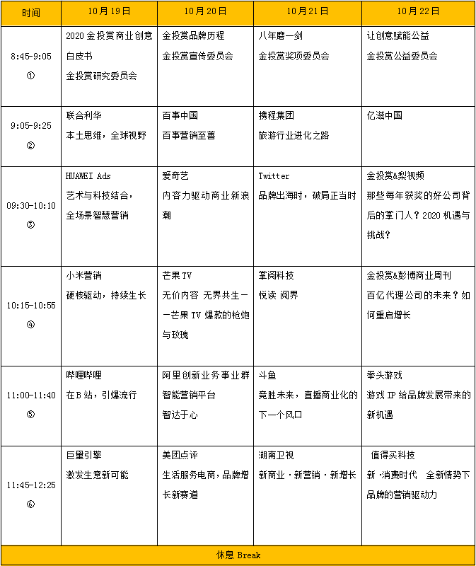 第十三届金投赏国际创意节—全球商业创意领袖峰会议程