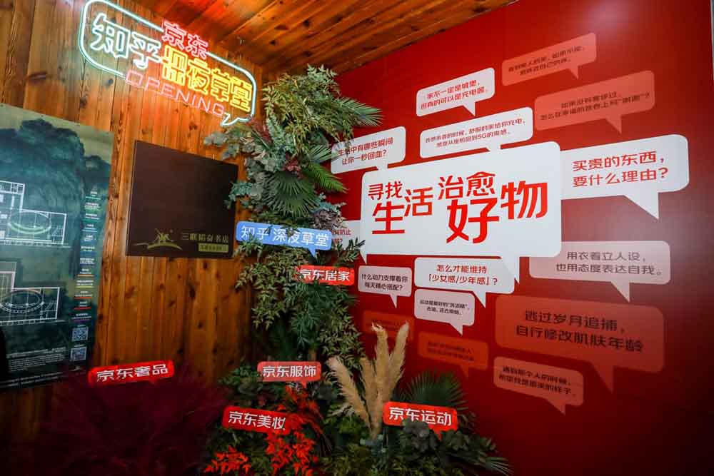 与此同时,知乎还将内容营销阵地由线上延伸到线下,与北京三联韬奋书店三里屯店合作了「深夜草堂」线下店,在北京潮流青年的集合地,与大家一起分享都市人的治愈故事和美好产品。消费者走进书店内的「深夜草堂」主题区,可以通过手机扫码与15款京东治愈好物来一场“惊喜奇遇”,还能将自己心仪的推荐好物写在卡片上,种草给更多朋友。知乎通过激发UGC,使品牌内容可以持续发酵,形成口碑裂变,逐步完成从“心仪好物”到“口碑爆款”的打造。