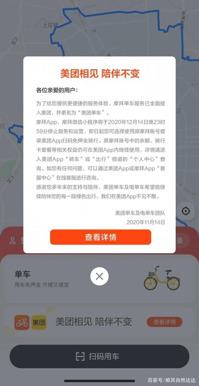 昨晚,美团单车及电单车团队发布公告称,摩拜App、摩拜微信小程序将于12月14日晚23点59分停止服务和运营,即日起用户可选择使用原摩拜账号登陆美团App,原摩拜账号中的余额、骑行卡套餐等相关权益仍可在美团App内继续使用。