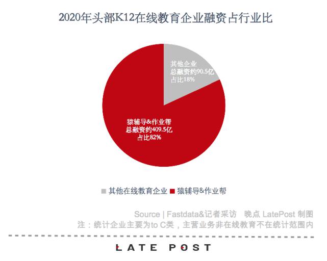 在 2020 年 500 亿风险投资中,82% 的钱投向了作业帮、猿辅导两家公司,剩下的钱则流向了各个细分赛道的头部公司,如编程猫、美术宝等。