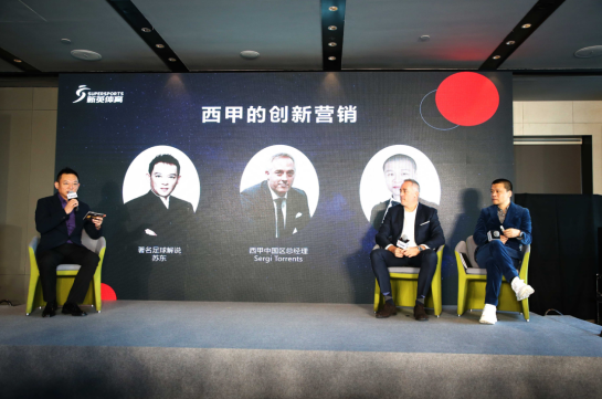 在活动现场,新英体育副总裁朱有劲与西甲联盟中国区总经理, SFCM公司CEO Sergi Torrents一同分享了新英体育与西甲在未来如何与品牌和赛事机构一同携手在商业开发、品牌推广及市场激活方面做全新的尝试,新英体育将与SFCM一同深度开发西甲这一全球娱乐品牌在中国的市场潜力。Sergi Torrents表示:西甲在中国的发展战略最重要的核心要素就是本土化,我们与MediaPro和新英体育创建的合资公司,能够把西甲的本土化做的更好。中国目前是西甲联赛除了西班牙本土和北美市场之外的第二大市场,但是西甲联盟相信,未来几年内,中国将会成为西甲在海外的第一大市场。未来,SFCM将会围绕数字生态系统与线下活动及电竞业务,进行深度商业化开发,为品牌提供更多的商务营销解决方案。