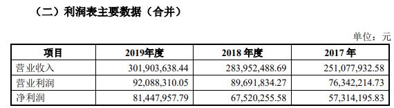 据冰峰的辅导备案申请报告显示,西安冰峰2017-2019年的营业收入分别为2.51亿元、2.84亿元、3.02亿元,2018年、2019年营收同比增速分别为13.15%、6.34%;2017-2019年的净利润分别为0.57亿元、0.68亿元、0.81亿元,2018年、2019年净利润同比增速分别为19.30%、19.12%。
