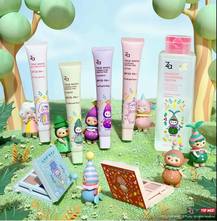 在美妆行业,品牌们通过“盲盒”试图在消费者面前刷新存在感。比如资生堂旗下Za与泡泡玛特联名推出一系列限定化妆品;旁氏氨基酸米粹洗面奶和泡泡玛特的毕奇甜甜系列推出了联名款洗面奶……