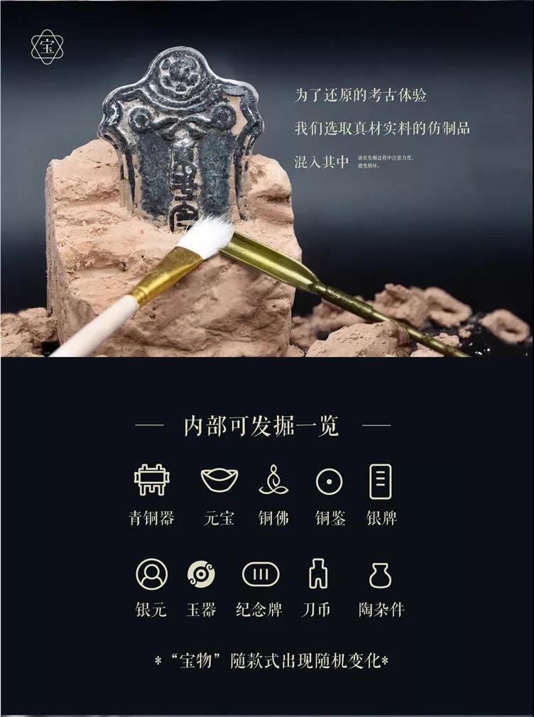 河南博物馆推出了“河南博物院考古盲盒”,把各种仿制的“珍奇宝藏” 和当下喜闻乐见的“盲盒”形式搭配在一起,消费者可利用内赠的迷你版“考古工具”来体验考古过程。这种搭配的方式在于一面是这两年很火的盲盒,一面是带有国潮风元素的考古文物,虽然盲盒给人的感觉是万物皆可,但这两者叠加到一起,还是发生了一种有趣的心理反应,都是年轻人爱的,很大程度上产生了1+1>2的效果。