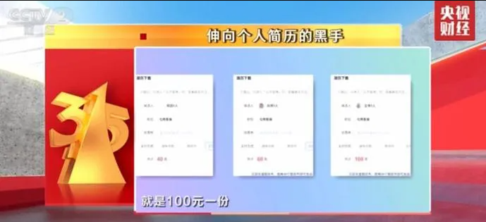 智联招聘求职者简历被售卖。2021年央视“3·15”晚会开播,智联招聘被点名。在贴吧论坛qq群等渠道,支付7元可以得到智联招聘简历。卖家称,只要给钱就可以买到智联招聘简历。