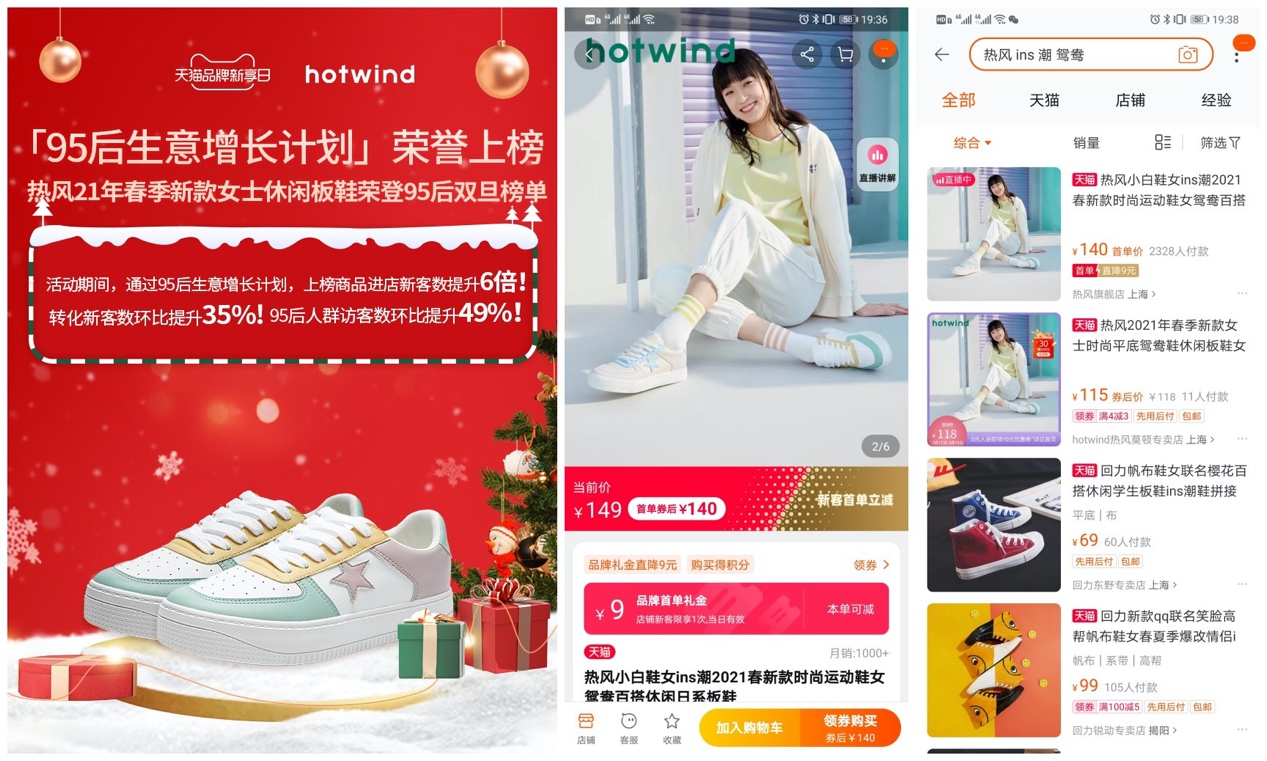 热风作为一个面向年轻群体的快时尚品牌,一直十分重视95后优质人群的拉新。通过参与品牌新享“95后生意增长限时计划”,店铺找到了能够精准渗透95后人群的高效货品,并依托首单礼金全链路的新客权益透出,吸引到了更多关注时尚且兼顾性价比的95后年轻人。其店铺一款女士休闲板鞋在活动期间新客数提升6倍,转化新客数环比提升35%,95后人群访客数环比提升近50%。