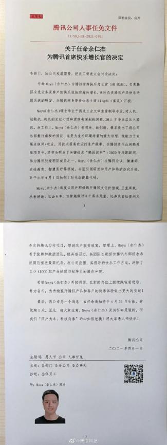 首先上场的是腾讯,一项全新的高管任命让“余仁杰”出现在大众视野。乍一看,这次任命,代表了腾讯业务的全新部署。不过如果你一时还没有领悟到,也没关系,毕竟张一鸣也不能。但有一点你应该清楚,这其中有诈啊。这位铁汁Moyu(余仁杰)的英文名不就是摸鱼嘛!中文名当然就是愚人节啦……另外,任命的最后一段,藏着这么一句话:“请大家注意,Moyu(余仁杰)及其任命是假的”。