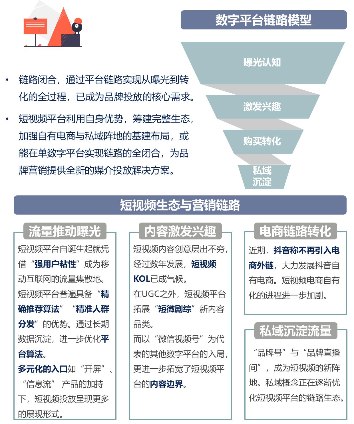 • 从粉丝运营来看,对于抖音和快手而言,品牌在创意活动时更容易获得粉丝的关注、留存;视频号可以将流量直接导入品牌在微信已有的私域场景。