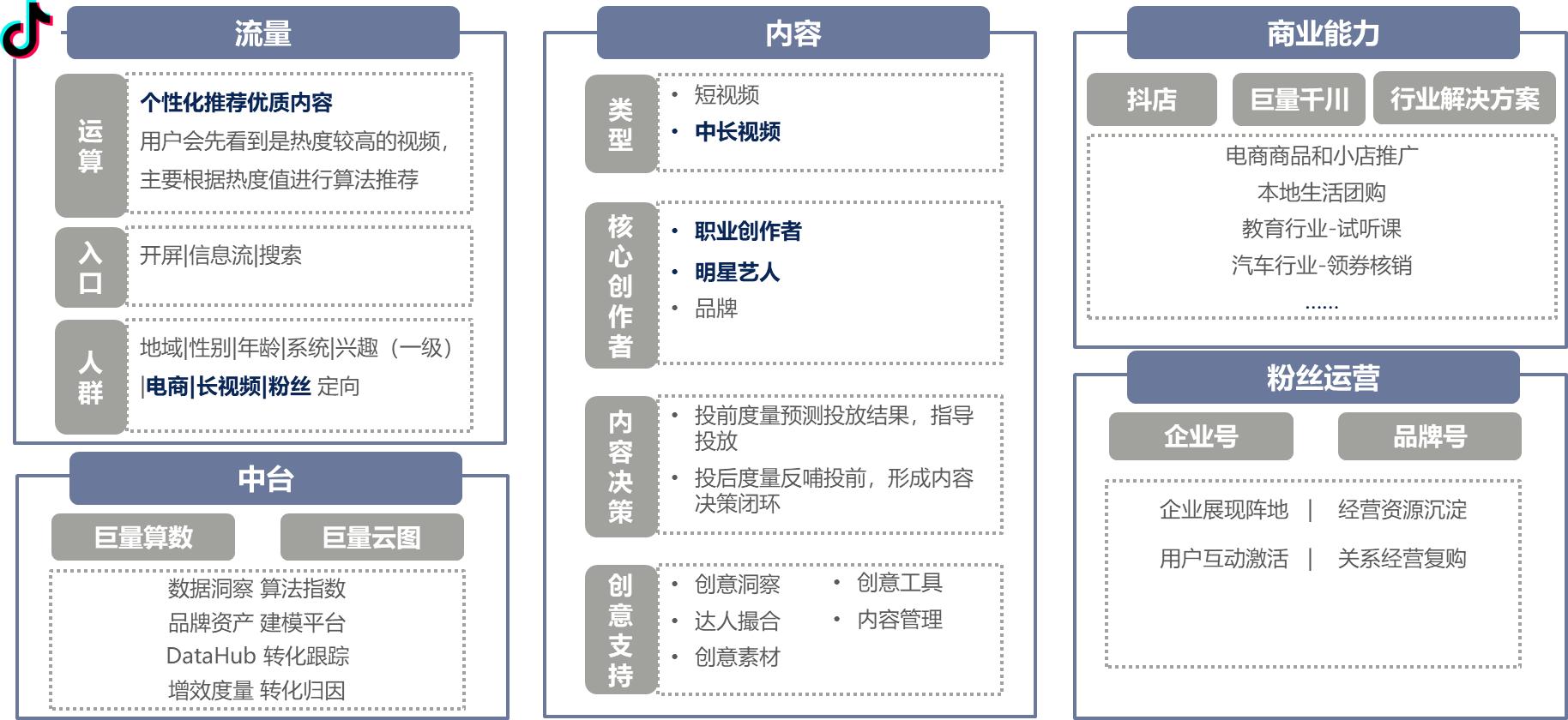 l 抖音借巨量引擎数据沉淀及多元化内容创意,可不断拓展商业变现能力