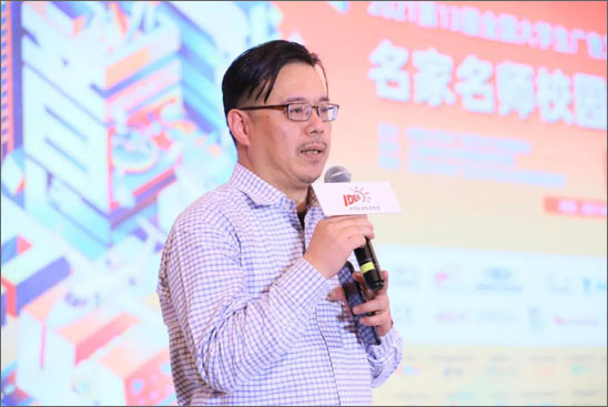 在一阵阵热烈的掌声和欢呼声中,全国大广赛评审主席、中国广告四大“教父”之一的MATCH马马也文化传播创始人/CEO莫康孙先生为同学们带来了一场名为《创意ACTION》的主题讲座。