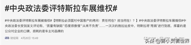 但是这其实也要看牌面的,人民网、半月谈、长安观察、环球时报这些点名,特斯拉和背后的靠山可以不看。