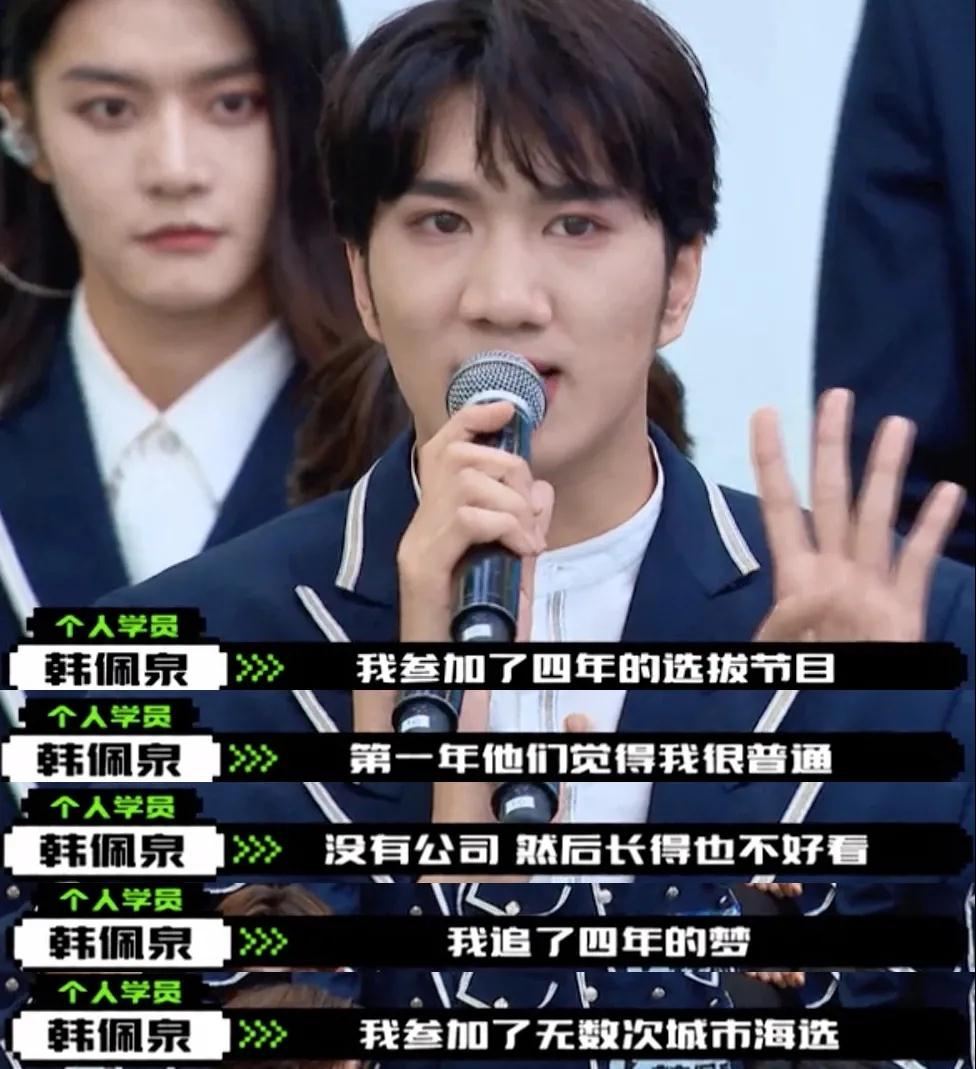典型如《创造营2021》中给无数人惊喜的韩佩泉,他从素人到红人再到艺人的身份变化过程中,不乏平台的助力。
