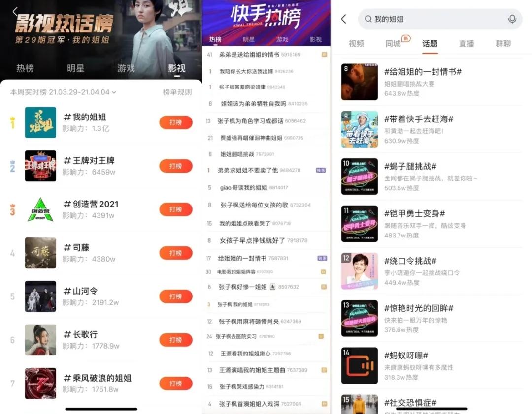 以《我的姐姐》为例,其在快手上的相关视频播放量已突破36亿,同时借助话题征稿等互动活动,影片核心情感进一步发酵,在激发用户情绪共鸣的同时完成了高票房转化。