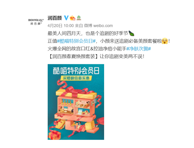 根据相关研究数据显示,用户购买平台会员的核心驱动因素就是优质的内容资源,除了基本的优质内容与良好的使用体验,用户也十分关注会员身份带来的品牌联合权益。“酷喵特别会员日”正是酷喵利用自身优势为会员价值赋能的体现,酷喵会员用户可以尊享电视、手机、电脑、平板多端特权,跳过片头广告节省时间,帧享影音尊享视听盛宴,还能快人一步抢先看热剧,专享独家精彩内容。而“酷喵特别会员日”每月的超值福利,无疑也是为用户提供了另一种锦上添花的会员特权,多场景化实现了会员福利。首个合作品牌华熙生物润百颜已于4月19日下午16:00开启,购买酷喵VIP年卡,赠送润百颜春夏焕颜套装。
