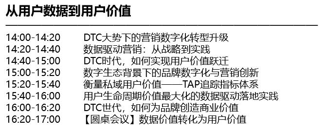 最后一个分会场,是由GrowingIO与Morketing联合主办的“从用户数据到用户价值”,将会更关注在数字化转型及 DTC 等概念日益火热的情况下,企业如何放大数据价值,通过精细化用户运营实现业务增长。