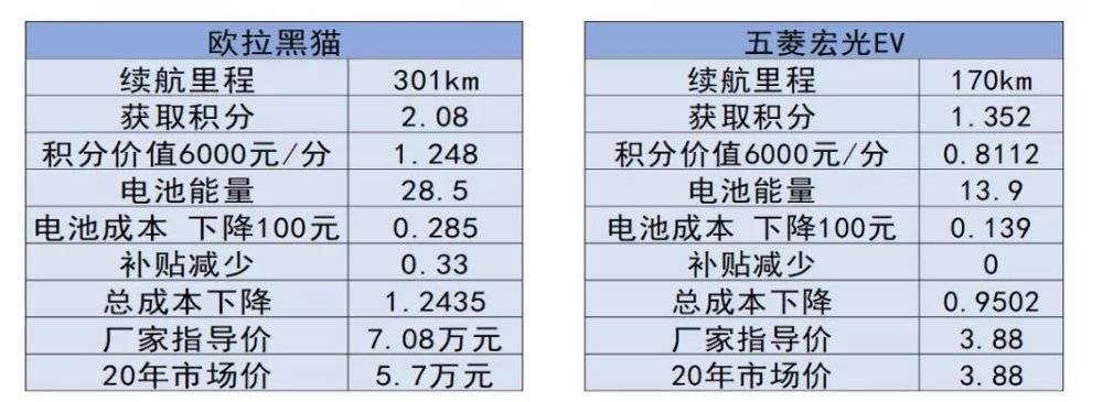 以长城汽车旗下欧拉品牌的欧拉黑猫为例,2021年,一辆欧拉黑猫可获取新能源正积分2.08分,每分价格计为6000元,电池成本可下降100元/千瓦时,磷酸铁锂成本的降幅更大,虽然补贴减少了,但总成本仍可降低1.24万元。也就是说,电池成本的降低足以抵消补贴减少对企业造车成本的不利影响。