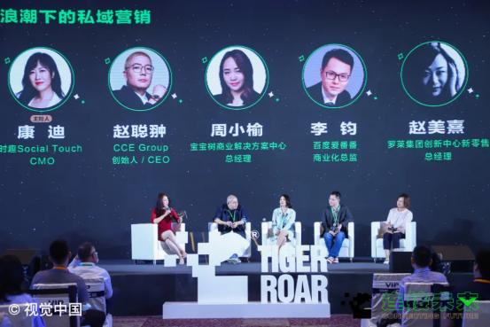 2.《浪潮下的私域营销》。2020年,被称为私域流量元年。这一年,私域触点在中国的渗透率达到96%,消费者对于私域的依赖逐步建立,私域流量已成为所有品牌不容有失的阵地。以《浪潮下的私域流量》为主题的圆桌分享,邀请到了时趣Social Touch CMO康迪为嘉宾主持,CCE Group创始人/CEO赵聪翀、宝宝树商业解决方案中心总经理周小榆、百度爱番番商业化总监李钧、罗莱集团创新中心新零售总经理赵美熹一起分享。