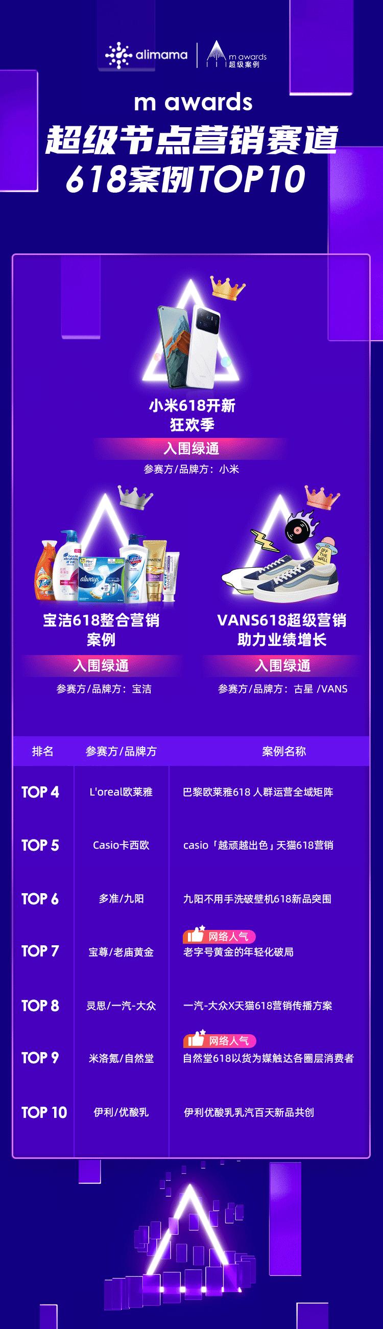 现在,第2届 m awards超级节点营销赛道618案例TOP10榜单正式出炉: