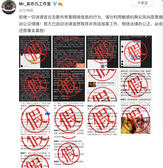 随后吴亦凡工作室也把都美竹的言论都打上“假”字,并表示已经启动法律追责程序,并完成报案工作,相信法律的正义,必将还原事实真相。