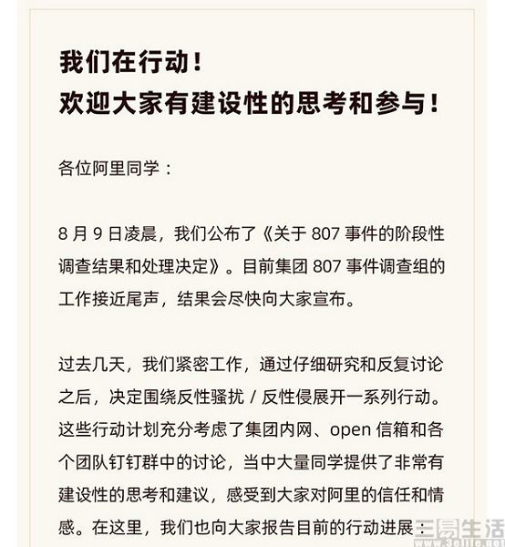 在这封全员信中表示“坚决抵制一切不良的职场潜规则”,并且为防止给员工个人及公司造成伤害,还对公司相关规定进行了更新。其中包括不对他人以言语、行为等形式进行明示或暗示的骚扰,不对他人进行性骚扰;不在内部活动或外部交往中对他人采取任何形式的涉黄言论和行为;不以任何明示或暗示的方式强迫他人参加饭局、陪酒;不滥用权力、不恃强凌弱等。