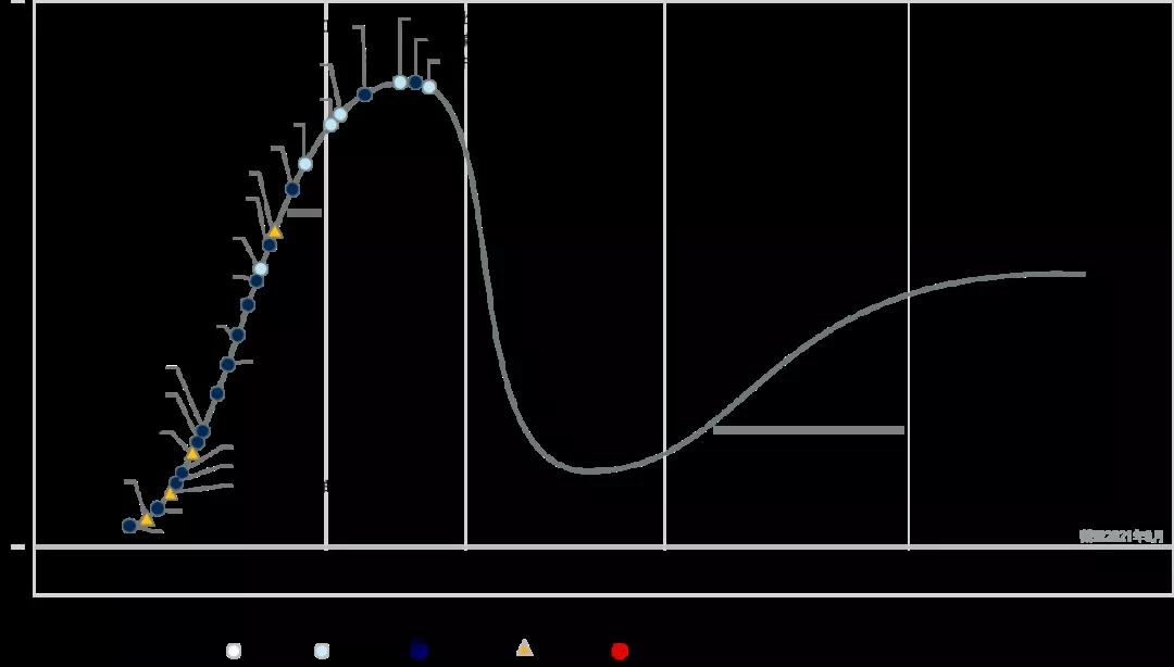 据了解,Gartner公司的每个技术成熟度曲线都将技术的生命周期划分为五个关键阶段——技术萌芽期、期望膨胀期、泡沫破裂谷底期、稳步爬升复苏期以及生产成熟期。