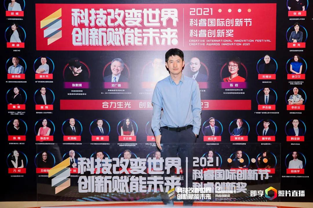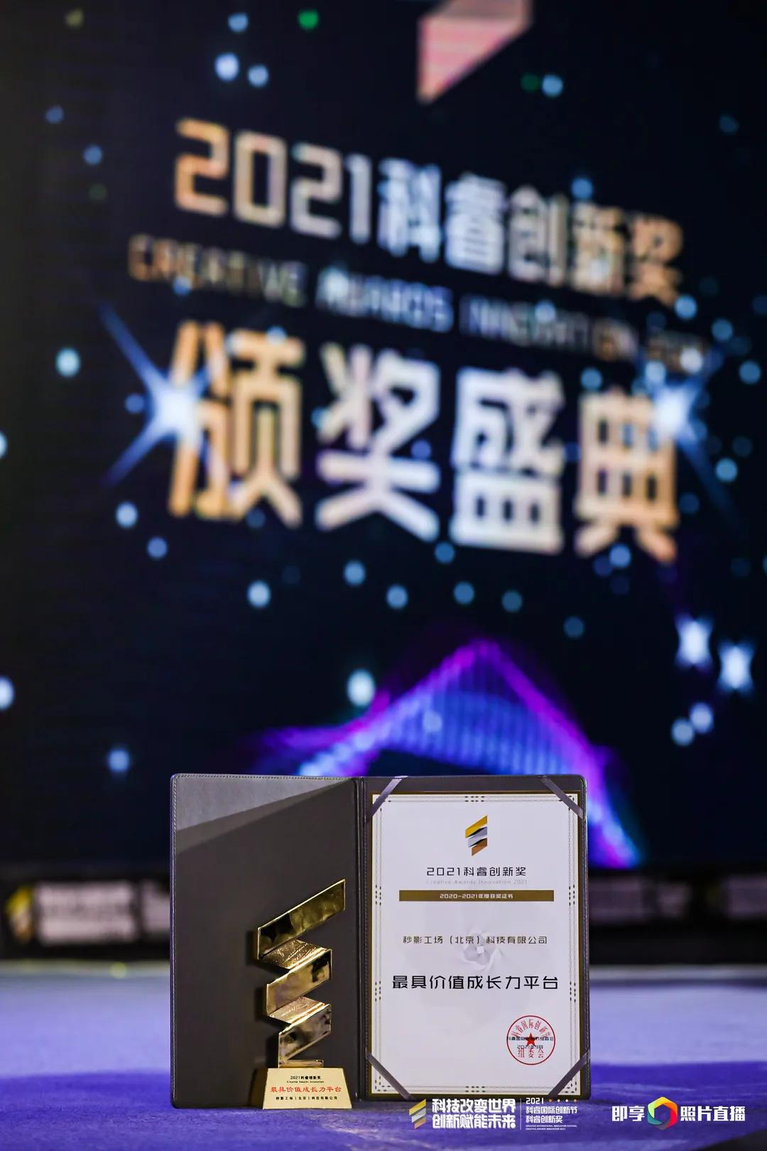 秒影工场提报的短视频营销案例从上千件作品中脱颖而出,荣获商业创新板块的金奖。该类别案例是基于商业领域的商业模式创新,利用新型营销连接商业价值或重新定义商业价值,从深度和广度上对秒影作品的创新内核进行了高度肯定。同时,秒影工场的技术与产品得到科睿创新组委会的认可,荣获科睿最具价值成长力平台。该奖项旨在表彰在行业内拥有影响力,公司品牌、产品或技术平台在今年内有巨大反响,具备强势的市场扩张和普及能力。在2021科睿创新奖颁奖盛典上,秒影工场总裁侯一凡先生登台领奖。