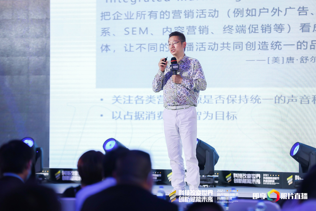 开幕式后,2021科睿国际创新节高峰论坛正式拉开帷幕。上午场主持人由科睿国际创新节执行主席田涛先生担任。第一个环节为【跨媒体时代 品牌增长新机遇】,田涛先生提到:在站到比任何时候都需渴望创新、拥抱创新的时间节点上,我们都希望通过创新获得更长时间的发展动力。因为除了创新或许没有更好的推进动力。既然我们想去拥抱变化,创新则是不可避免的。自科睿国际创新节创办以来,我们一直希望将科睿国际创新节打造成为整个营销业界的风向标,通过这个风向标来指引大家避免创新当中的失误,我们也试图将高峰论坛变成分享成功、甚至分享失败过程中的平台,因为创新不可能百分百成功。