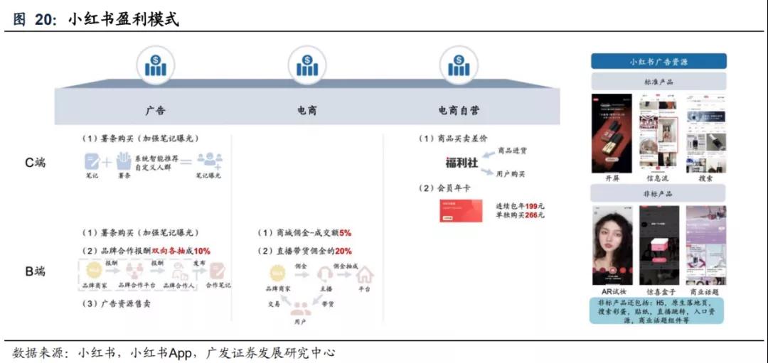 而如果再把小红书的收入细分,可以分为B端和C端购买“薯条”(流量曝光)分成、品牌和KOL的双向抽佣、内嵌商城的成交额佣金、直播带货佣金....