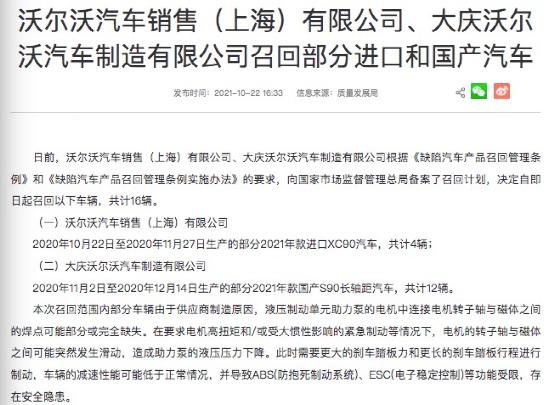 要知道,就在沃尔沃上市当月,其也宣布召回了部分2021年款进口XC90汽车和部分2021年款国产S90长轴距汽车。至于原因,官方说法是由于供应商制造原因,液压制动单元助力泵的电机中连接电机转子轴与磁体之间的焊点可能部分或完全缺失。究其实质,还是是安全隐患问题。但这一切,丝毫没有影响到沃尔沃的上市进程。