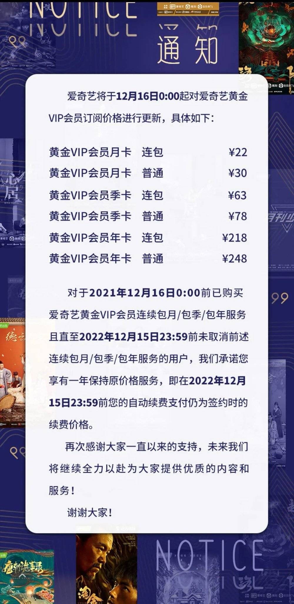 12月15日,爱奇艺VIP会员宣布涨价,年卡价格不变,月卡、季卡涨幅在9%~20%之间。