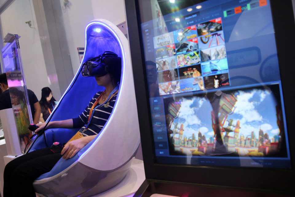 2016年被业内称为“VR元年“,图为当年的京交会上,观展者体验VR设备。