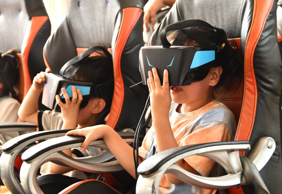 经过多年推广,VR眼镜对于公众来说已不陌生。图为河北邯郸市的小朋友在体验VR眼镜。