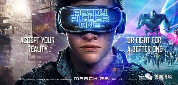 2018年上映的电影《头号玩家》,被认为呈现了最符合当今人类想象的元宇宙形式。在电影中,男主角戴上VR头盔,就能进入另一个极其逼真的虚拟游戏世界——“绿洲”。图为《头号玩家》海报。