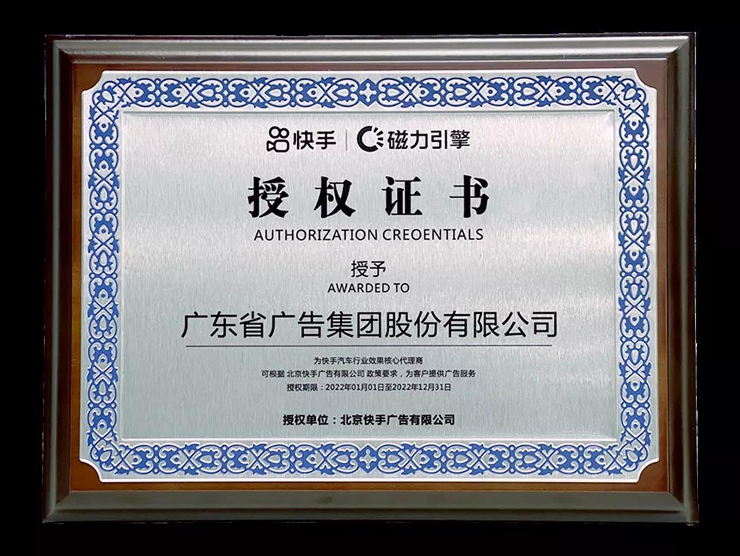 经过代理商层层选拔,凭借在汽车领域里的营销优势,省广集团受颁快手磁力引擎汽车行业效果核心代理商牌照,代表了快手磁力引擎对于省广在专业领域服务能力的权威认可。