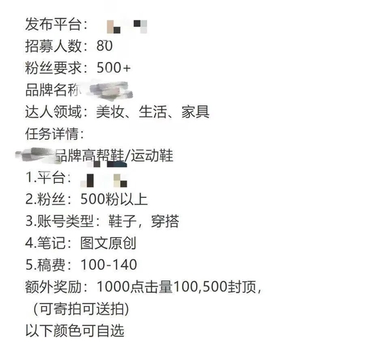 某品牌方有偿招募“网红”撰写虚假“种草笔记”