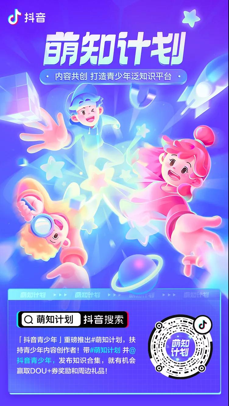 抖音将陆续打造“萌知动画季”、“萌知兴趣季”、“萌知文化季”、“萌知亲子季”、“萌知科普季”专场活动,针对重点品类的创作者做专项资源扶持,鼓励为不同年龄层、不同学习阶段的青少年,生产适龄内容,满足不同的兴趣爱好,让他们能通过视频内容“学知识、观世界”。