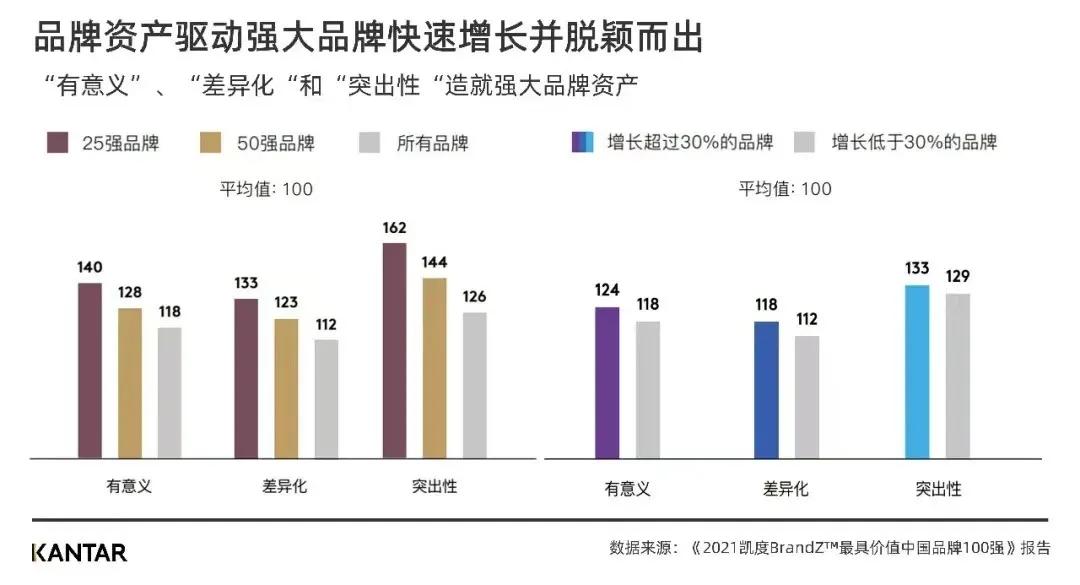 品牌的打造是需要长周期的,凯度中国就指出,成功的广告,并不一定等于立竿见影的效果,人们要用长期主义看待品牌资产,坚持“有价值的差异化”。