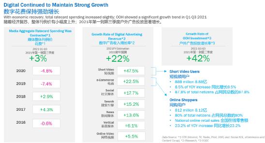 1月 2022 – 据独立营销咨询公司R3(胜三)研究发布,2021年数字广告投放总额预计增长达22%。而在第十一版《中国媒介价格趋势预测》中则更是指出,以下几个2022 年市场主需要关注的媒介投放重要点: