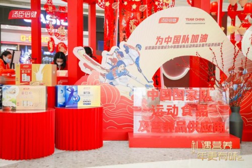 【体育陈列区】则展现出汤臣倍健作为中国国家队运动食品及营养品供应商的强大实力。