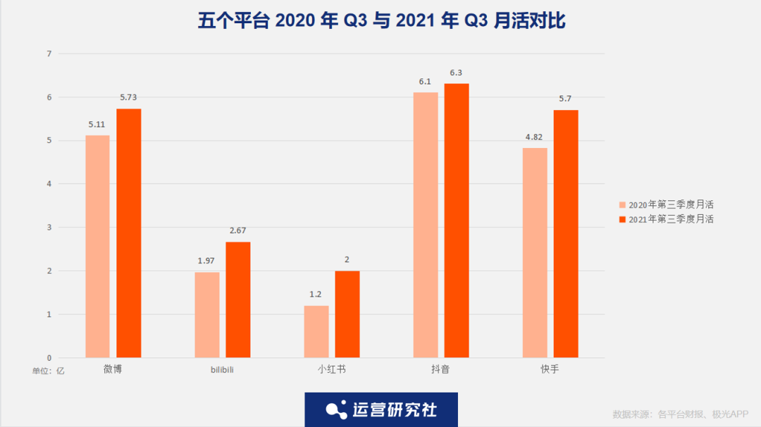 小红书2021年Q3的MAU已经达到2亿,似乎有追上B站MAU2.67亿的趋势。