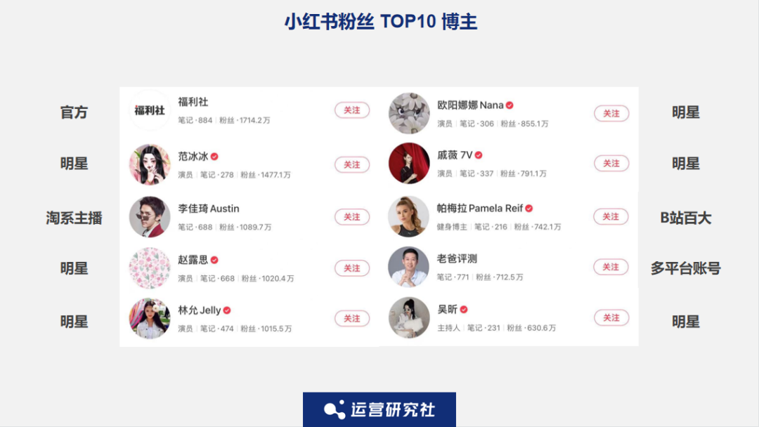 不难发现,在小红书中,粉丝数量高的大部分是明星,或者是将小红书作为“副阵地”的其他平台顶流。
