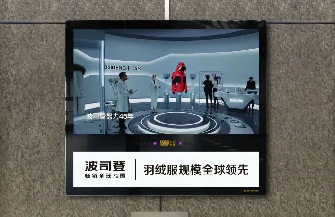 陪伴场:伴随消费者的生活轨迹,从情感层面与消费者进行沟通。例如,自2018年以来,波司登回归创业初心,聚焦主航道、聚焦主品牌,以品牌力量引领产品、渠道、供应链等全方位升级。同时,波司登牵手分众传媒在每一个寒风凛冽的时刻,电梯口的分众屏幕上都可以看到“为了寒风中的你,波司登努力45年”的暖心广告。随着国货品牌崛起大势,波司登再获时代主流消费人群青睐,实现高质量增长。