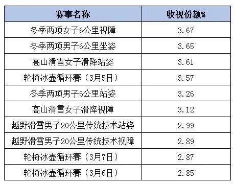 北京冬残奥会赛事收视份额排名前十