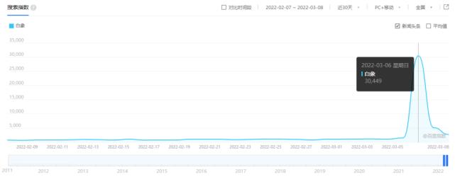 白象意外走红后,其关注度也直线上升。据百度搜索指数和微信指数显示,白象的相关数据都在3月6日达到了近一个月内的峰值。